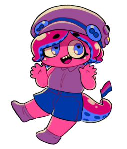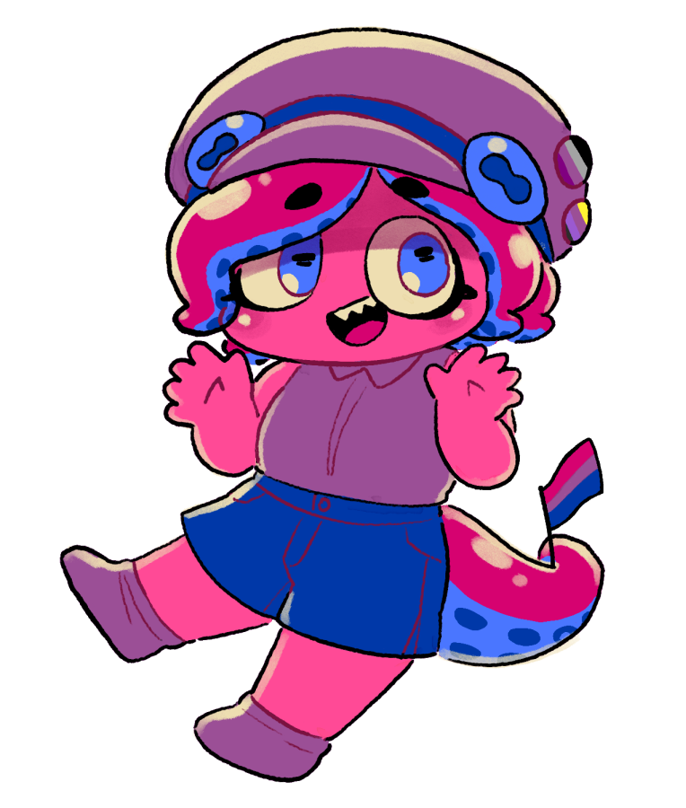 I realized my sona being an octopus means she can change her colors, so I wanted to try it out! But turns out the bi flag isn’t that different from her usual colors… (it’s destiny)