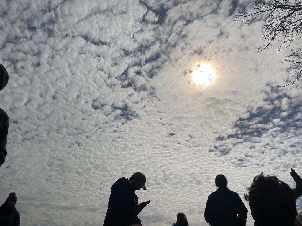 It’s obvious in retrospect but no one told me you’re supposed to take your glasses off while it’s happening, so I missed like 20-30 seconds of it. I’m sad about it because it was one of the prettiest things I’ve seen and I wish I burned it better in my mind. Not only the halo in the sky, but the way the horizon was pink and the way everyone in the ground was unnaturally lit – it’s stuff you only see in art, but it was right there and real.